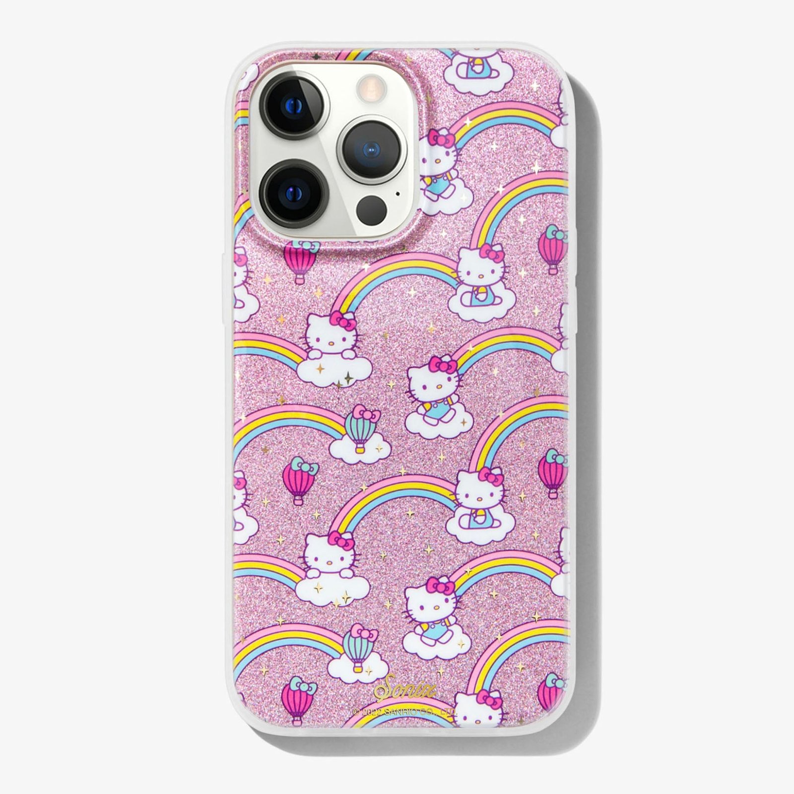 Featuring colorful glitter. rainbows. and clouds. our Rainbow Hello Kitty® MagSafe Comptatible iPhone Case is sure to bring a little sparkle into your life.