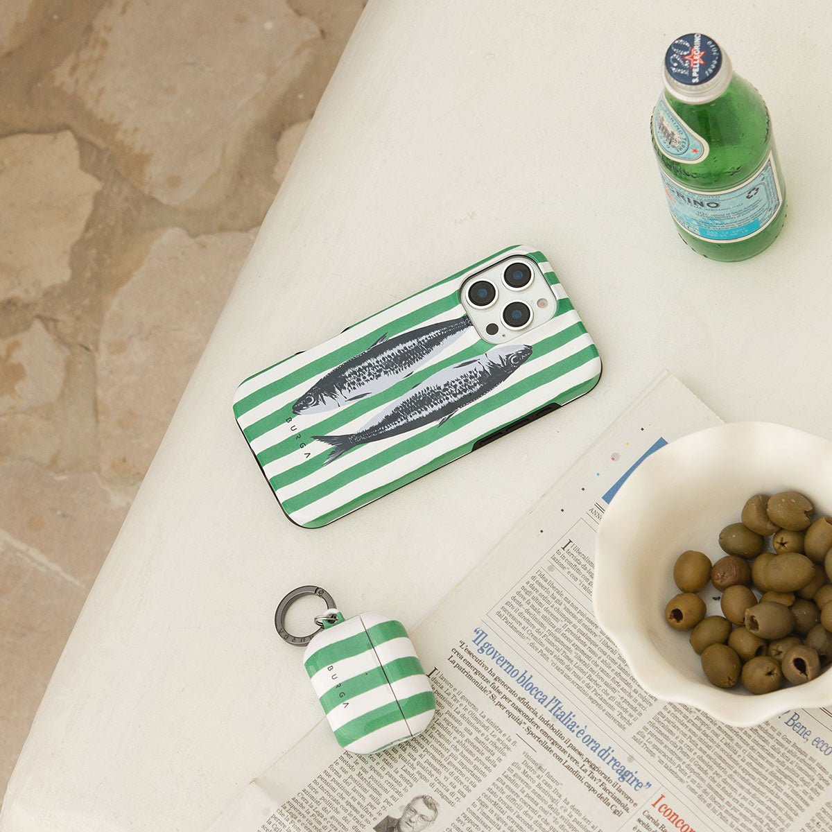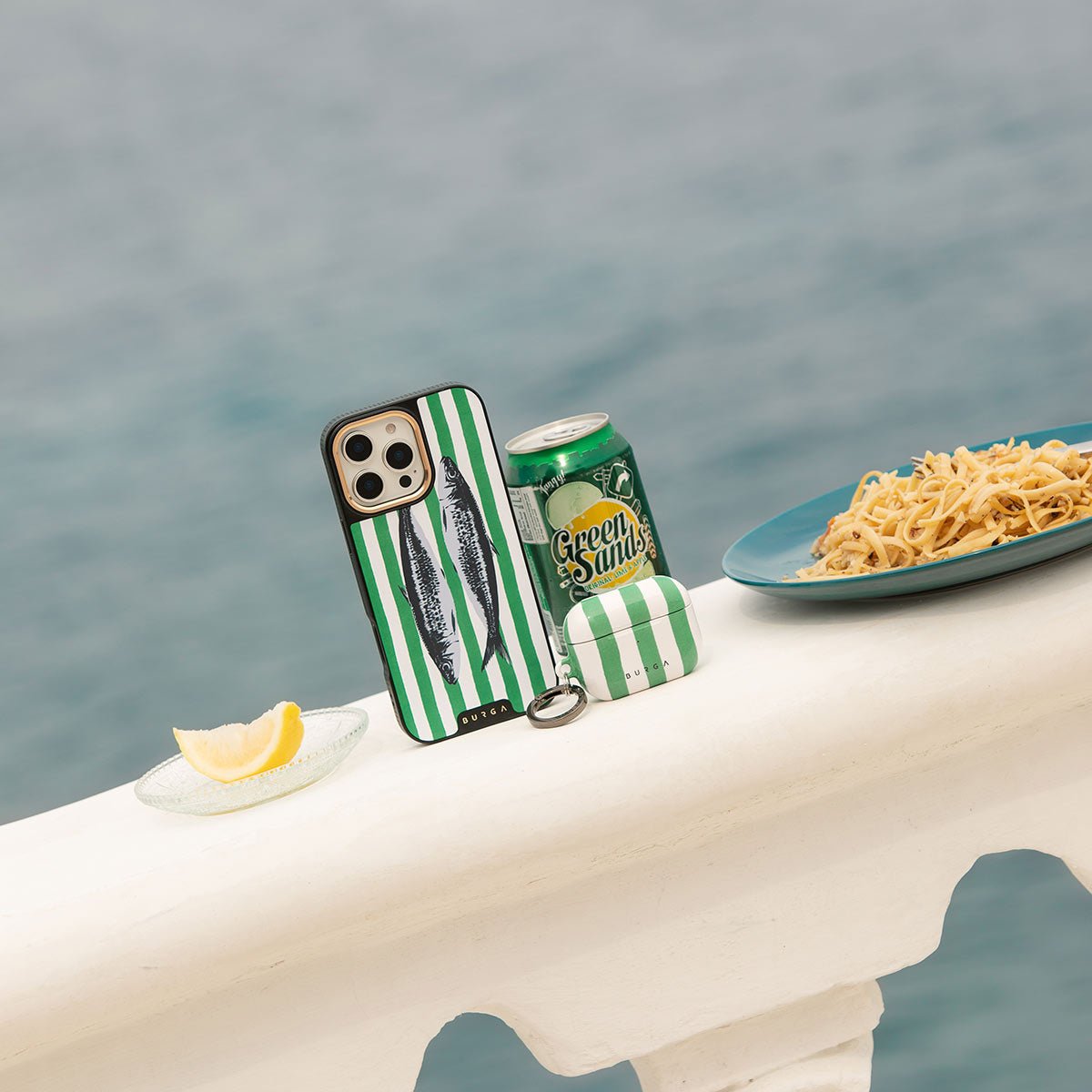 It’s like you’re riding a wave on a flamingo float. heading straight for a beach bar. This Apple AirPods 3 case cover design is sardines. stripes. and sunshine in the same breath—chaotic. cool. and ready to drop that vacation vibe. Can you smell the sea breeze yet?This design features: Sardines. green stripes. ocean motifs