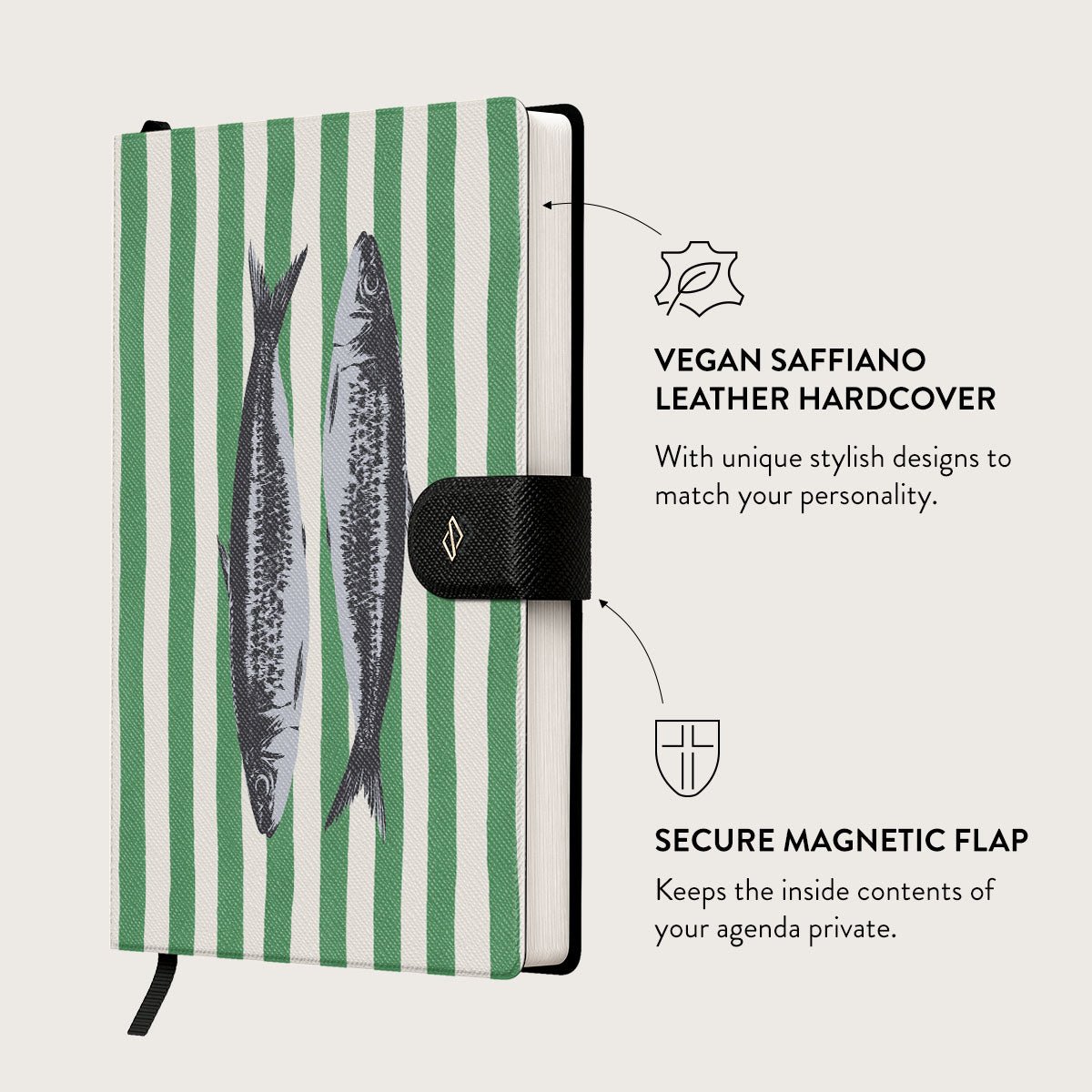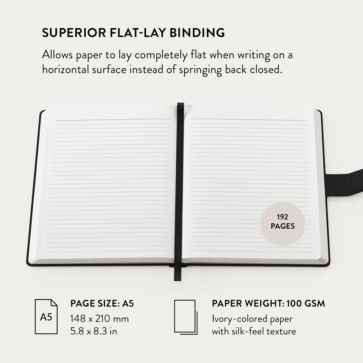 Superior flat-lay binding that keeps the notebook laying wide open. suitable for one-handed writing. No more struggling to use the beginning or end papers of the agenda.