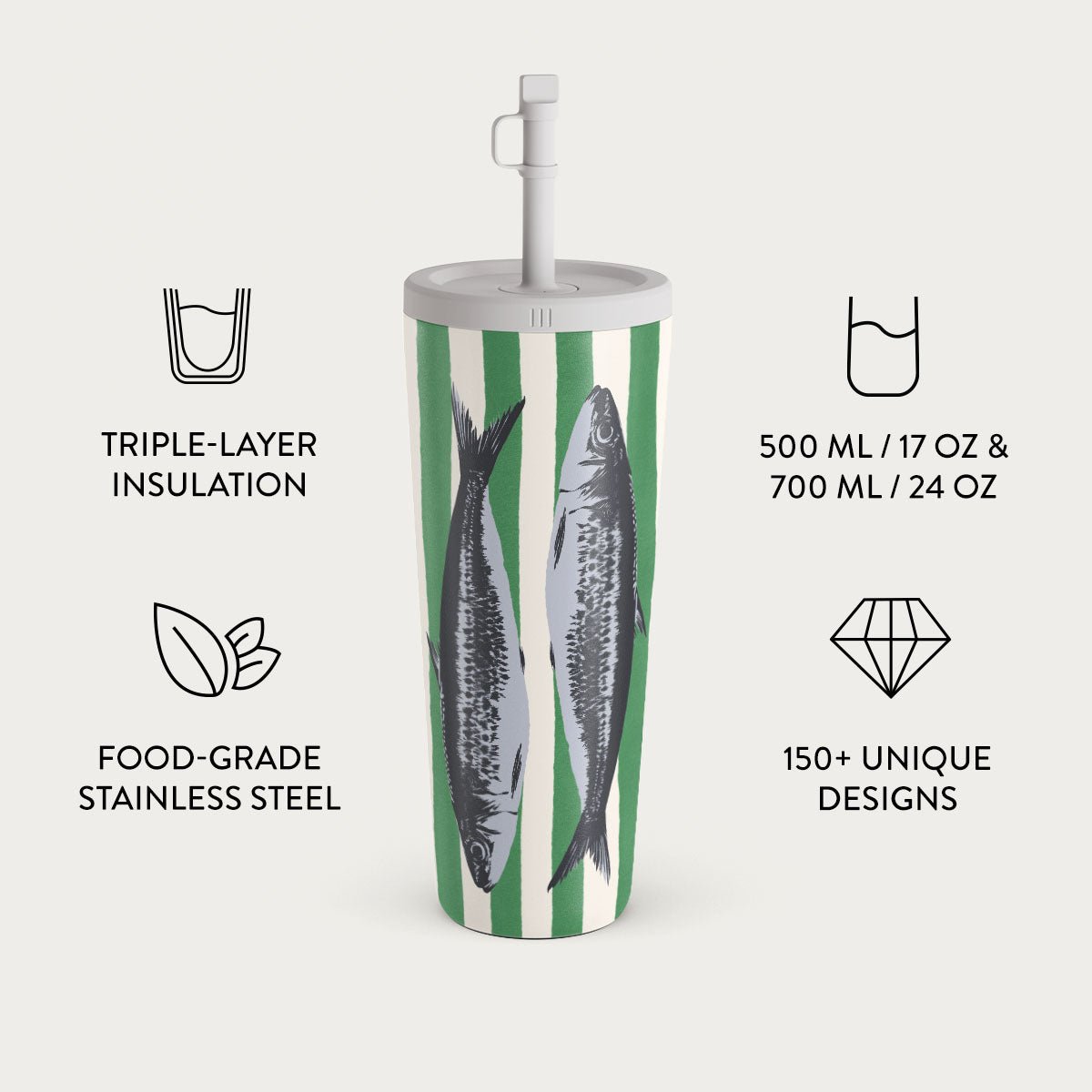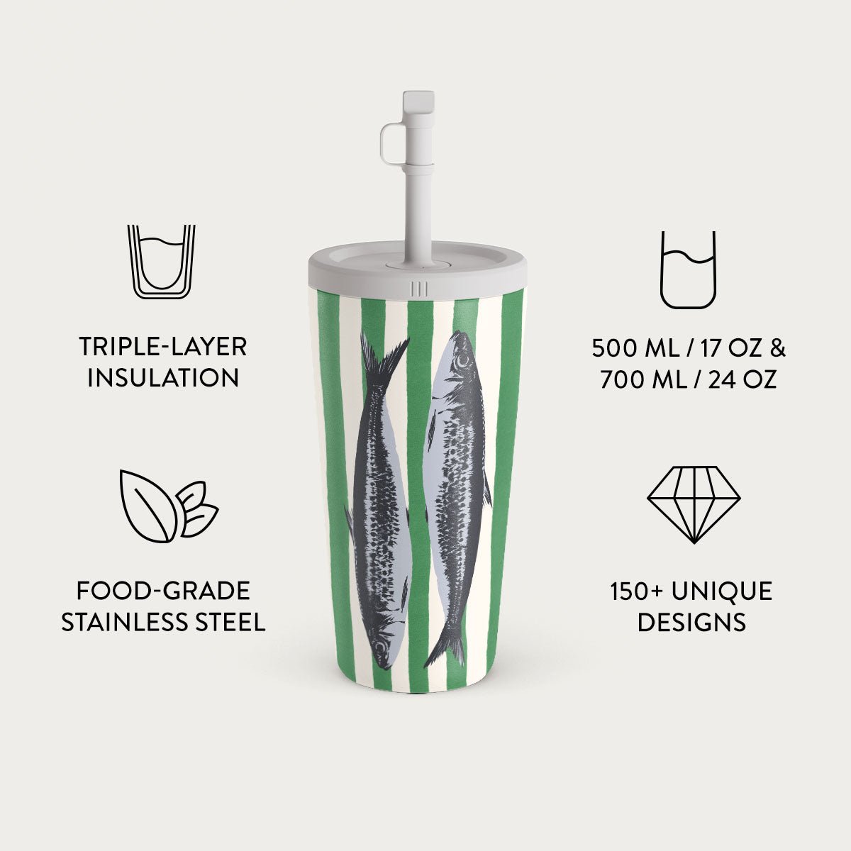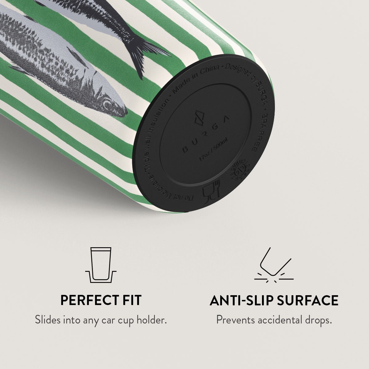 Choose from over 150 unique BURGA designs. each paired with one of six vibrant flap or straw lid colors. Our team matches the lid to the design for a seamless and stylish look.