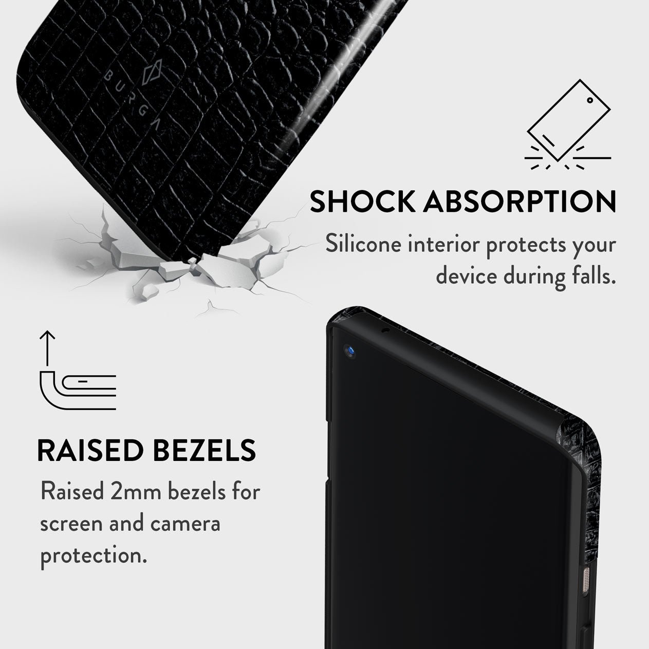 Our Reaper’s Touch OnePlus 8 phone case cover features a classic snakeskin design in dark black. The dangerous animal print will add confidence and a touch of luxury to your style while transforming your phone into a fashion accessory.