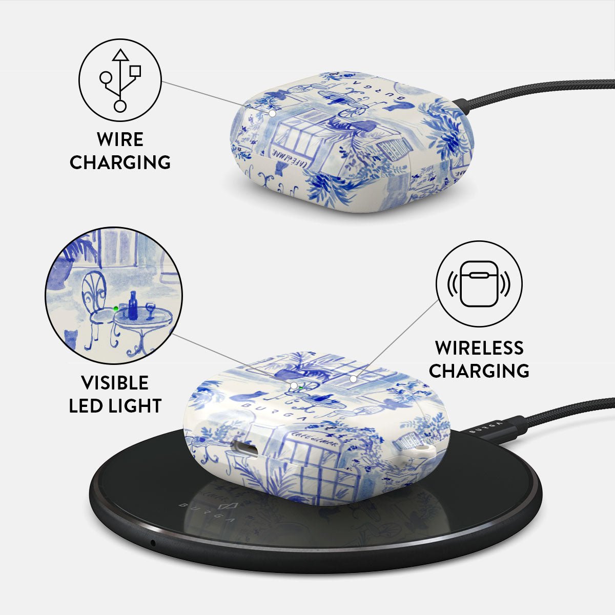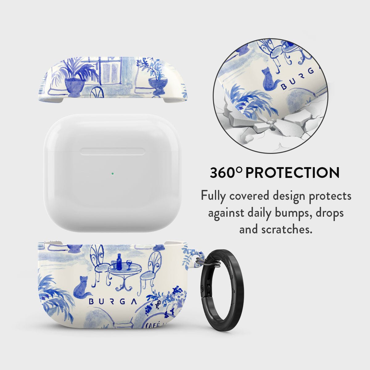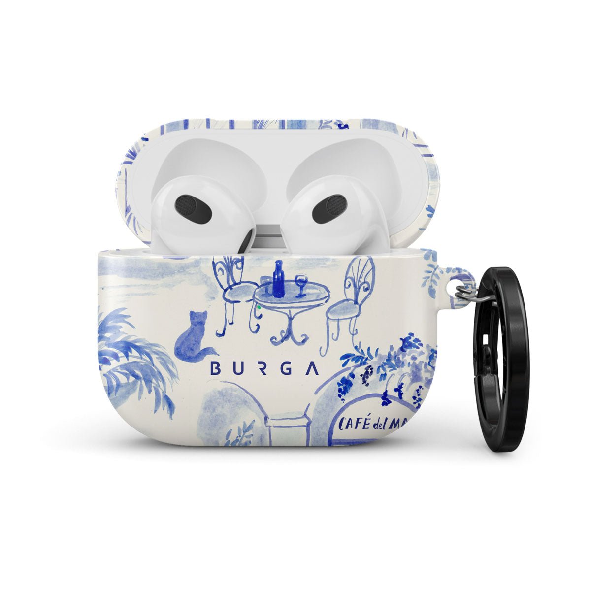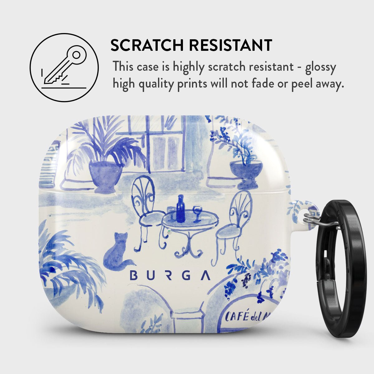 Close your eyes. You’re in a sun-faded café. sipping espresso with the ocean playing background music. This Apple AirPods 3 case cover design is soft and effortless. Someone pass me my oversized sunglasses. please.This design features: soft blues. coastal patterns. café elements. minimalist style. retro pattern. Mediterranean pattern