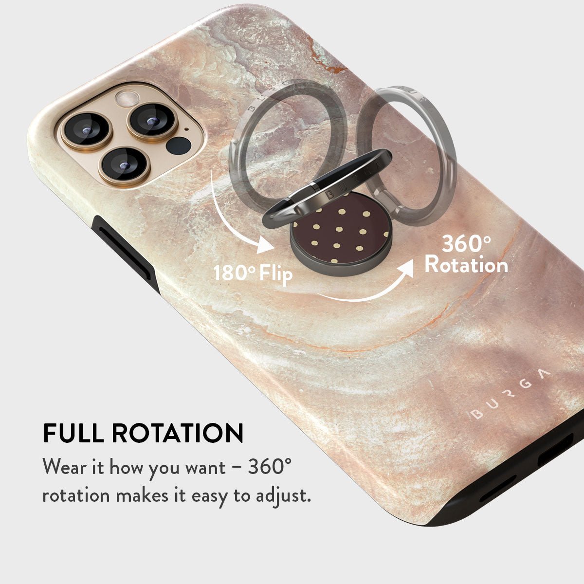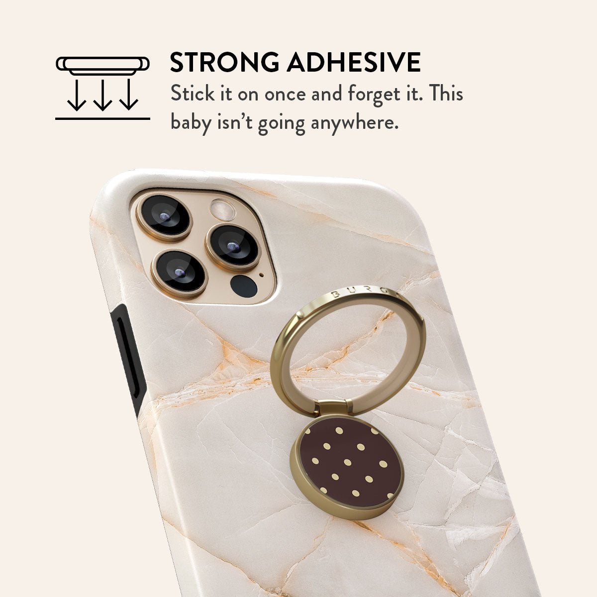 Meet the BURGA Phone Ring Holder: the tiny hero your phone didn’t know it needed. Pop it on the back of your phone. loop a finger through. and voilà! — your tech stays in place. effortlessly. Now that’s what we call hands-on security.
