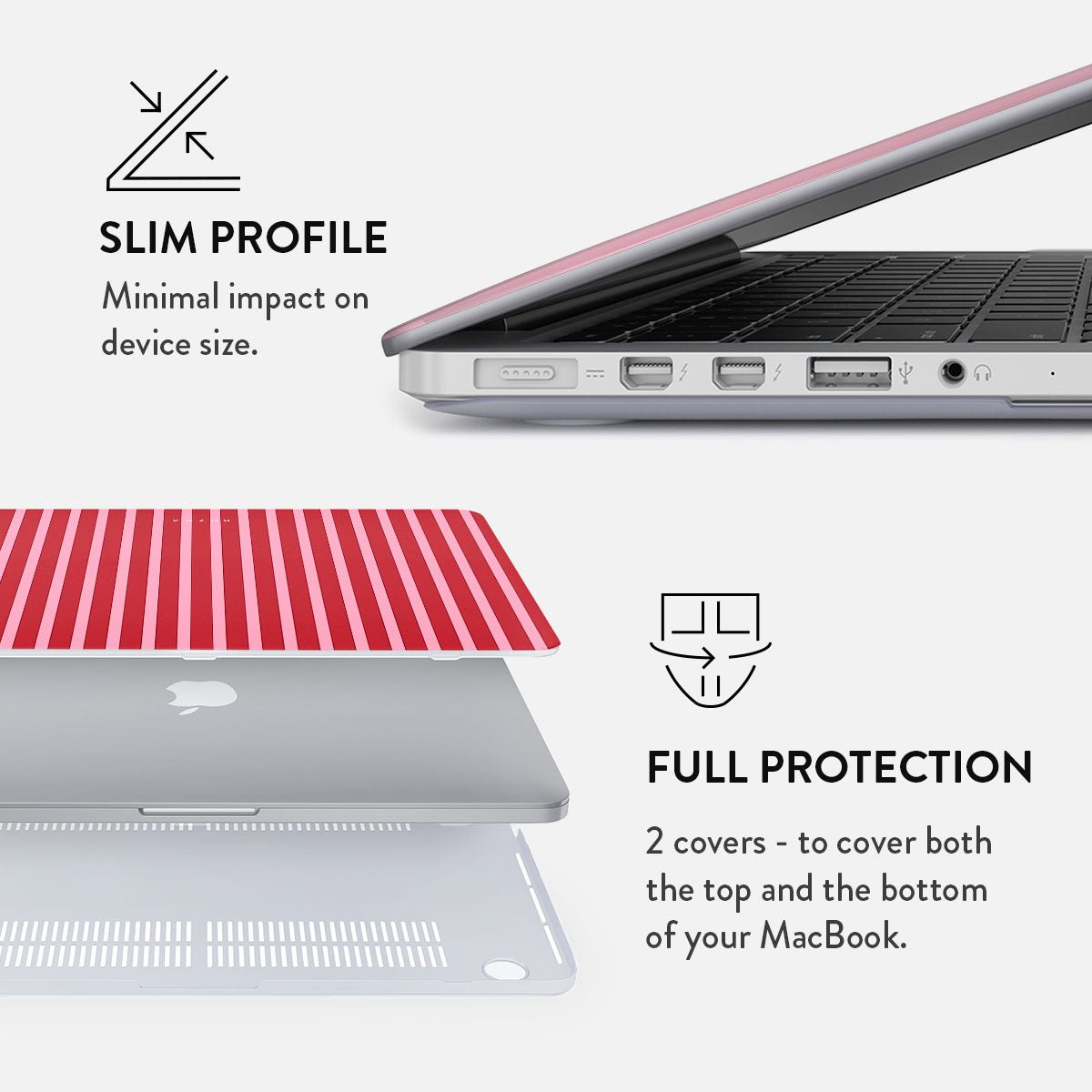 Either way. the BURGA MacBook case is the essential accessory for your everyday portable work-horse. It comes with two separate covers for the top and bottom of your laptop for that 360 protection. Despite this fact. it still maintains a slim profile and doesn’t make your MacBook feel bulky. The bottom cover also has a vent to keep your laptop from overheating when sitting. for example… well… on your lap! What else could you want from a MacBook cover? That’s right – easily accessible ports. Got that covered (or rather. NOT covered) as well.
