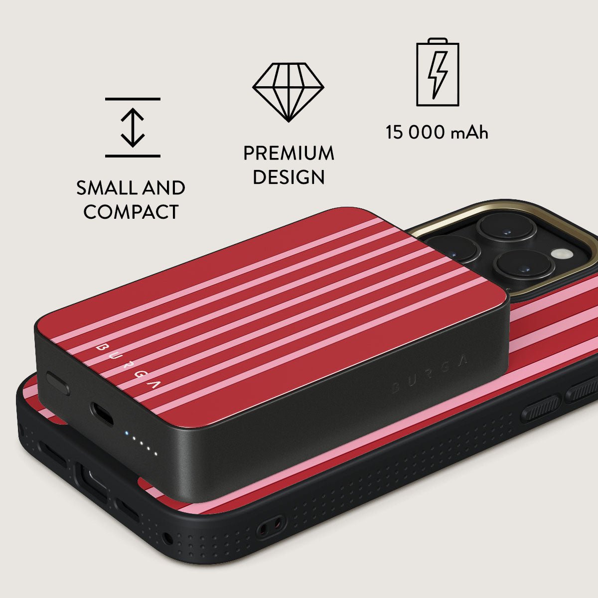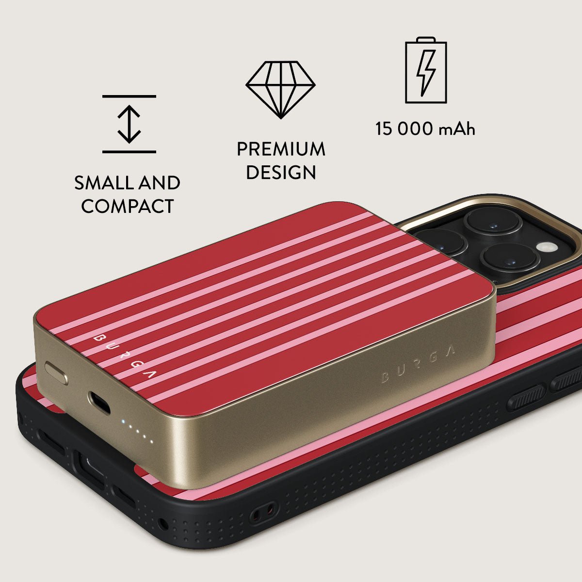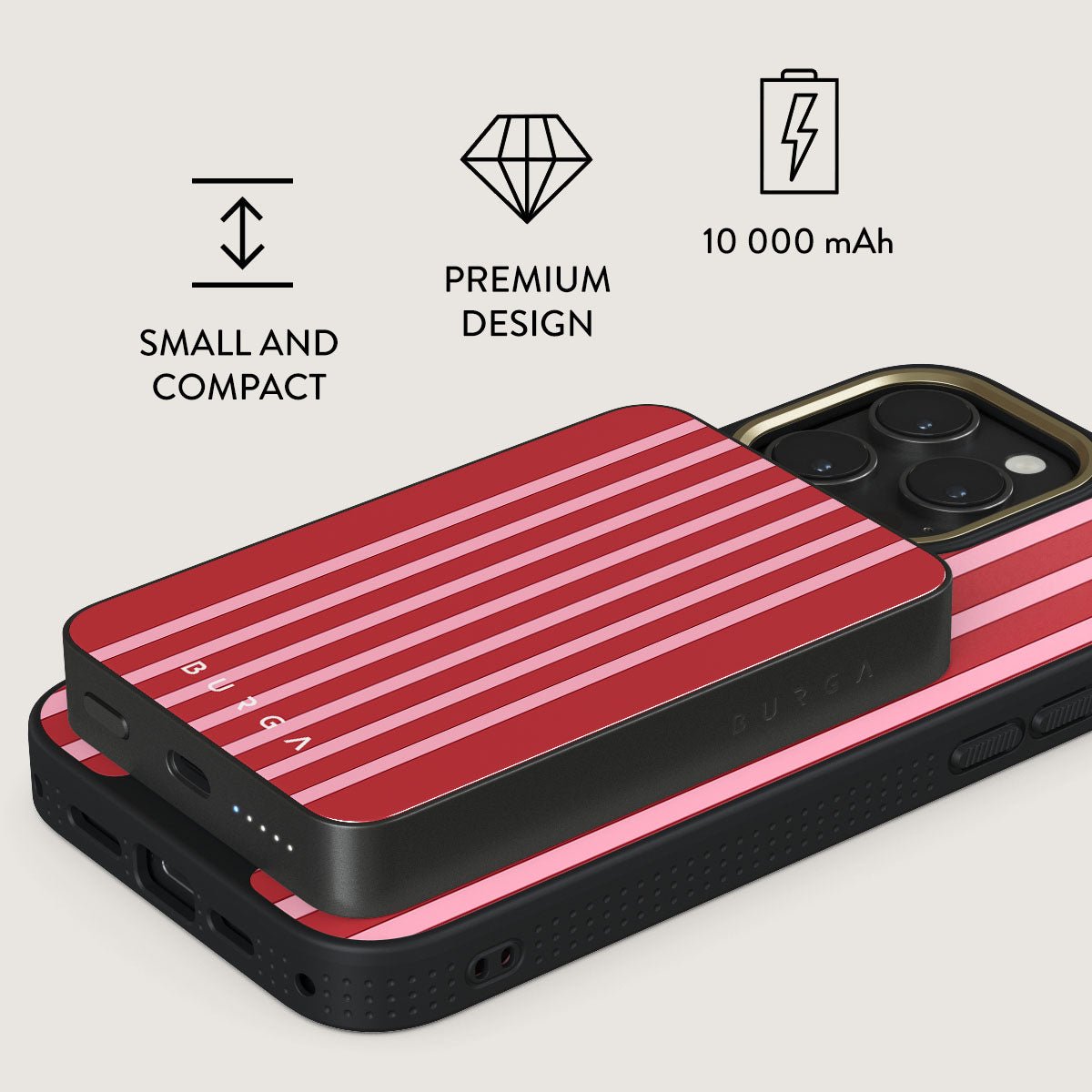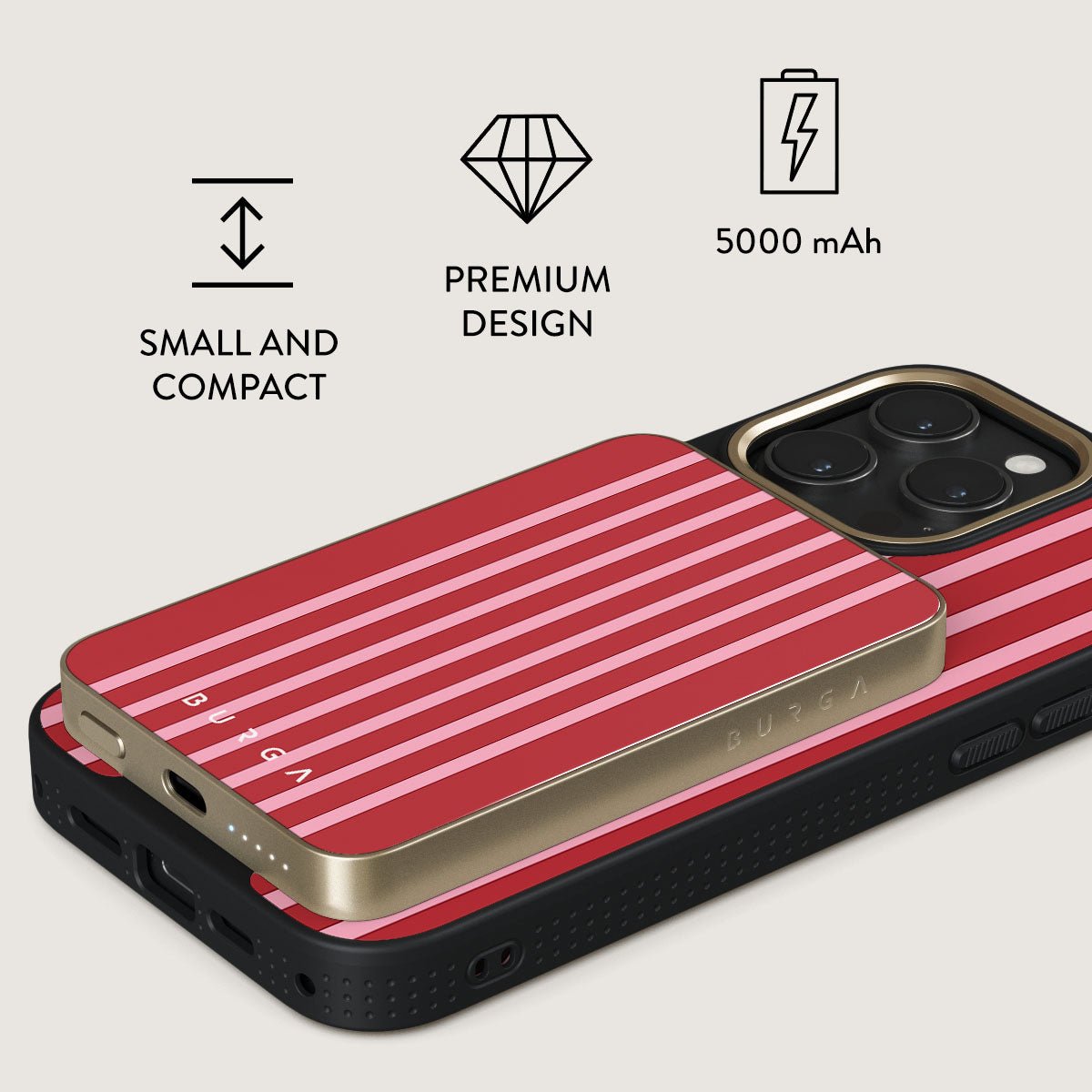Small but mighty. Stylish but practical. Meet the new and improved BURGA Magnetic Power Bank – your pocket-sized savior with a 5.000 / 10.000 / 15.000 mAh punch. It’s where sleek design meets BURGA’s signature style. made to keep you charged and turning heads wherever you go.