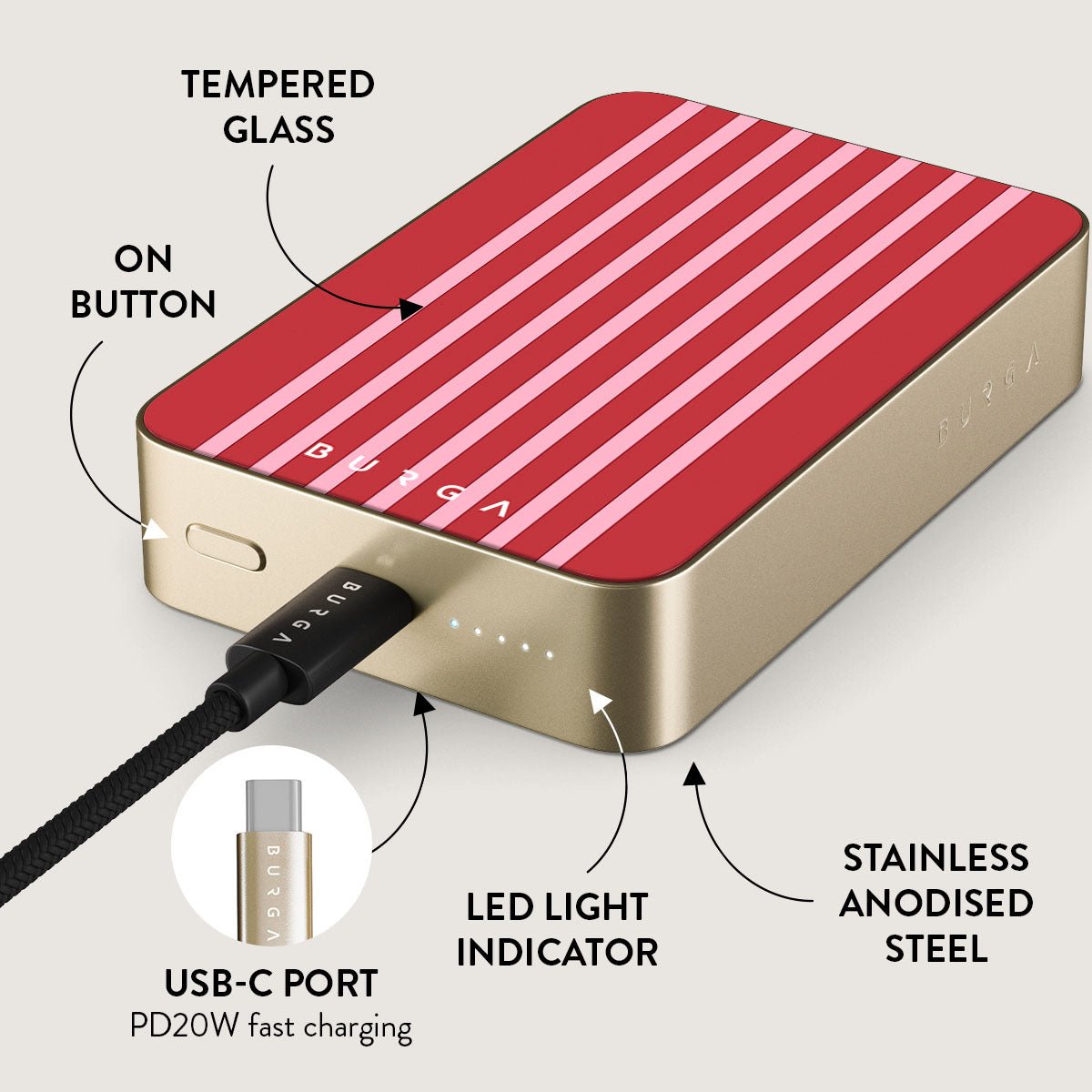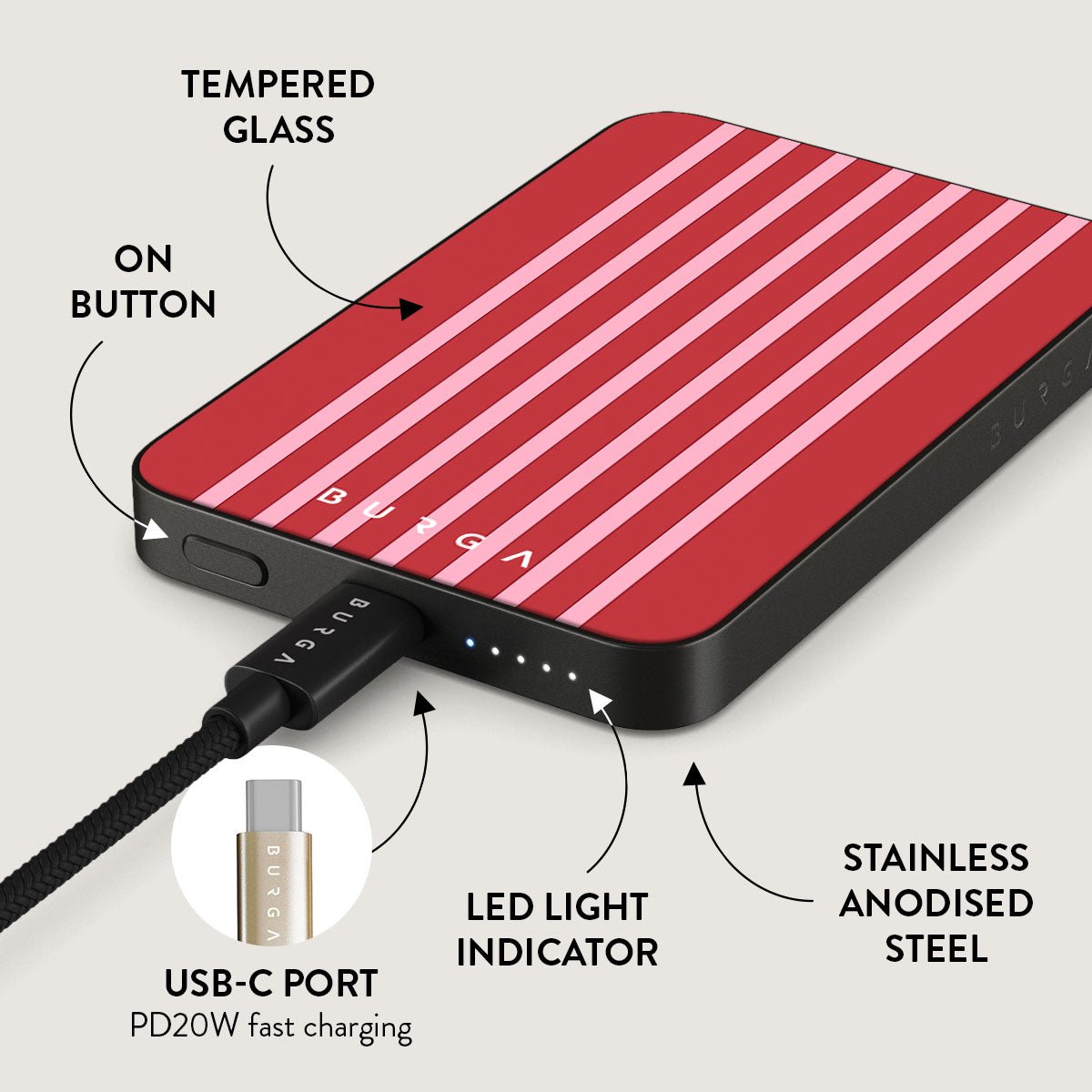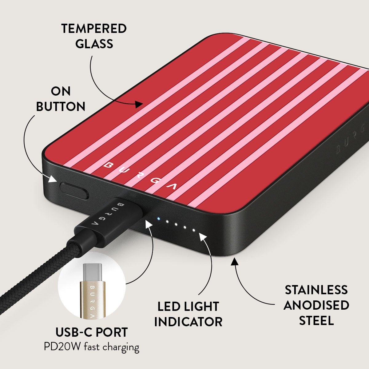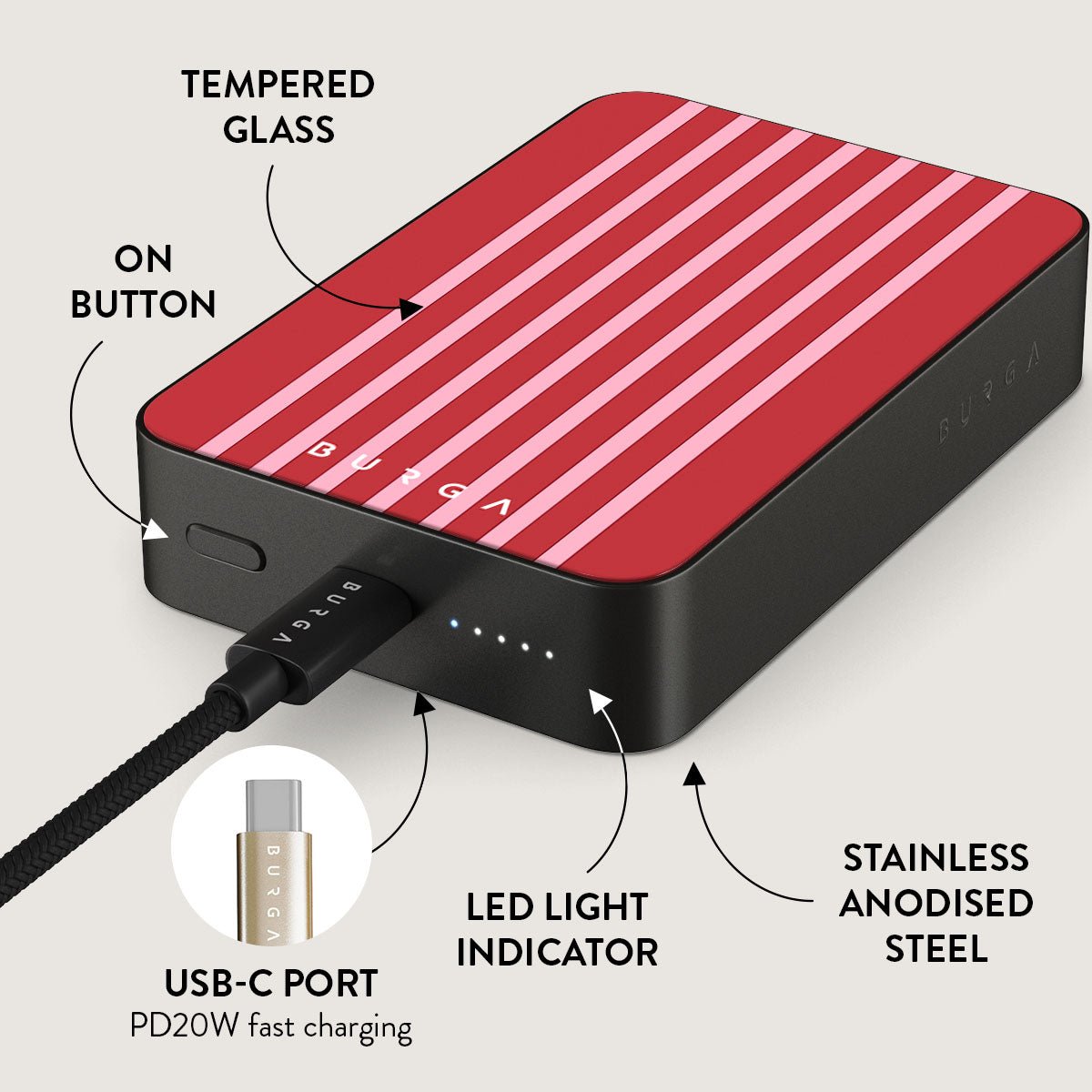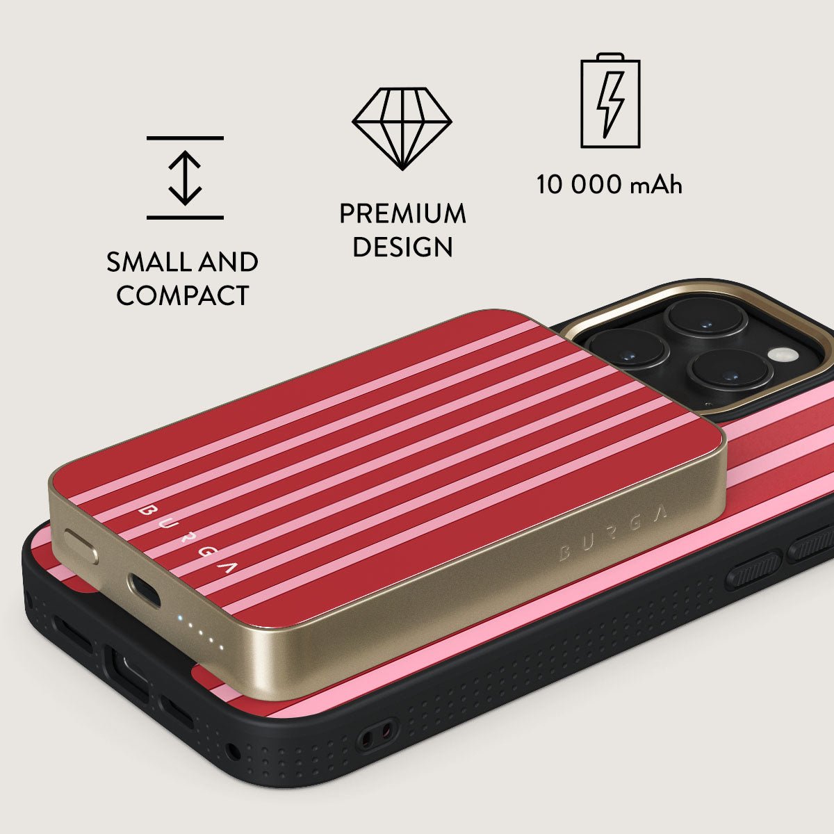 Small but mighty. Stylish but practical. Meet the new and improved BURGA Magnetic Power Bank – your pocket-sized savior with a 5.000 / 10.000 / 15.000 mAh punch. It’s where sleek design meets BURGA’s signature style. made to keep you charged and turning heads wherever you go.
