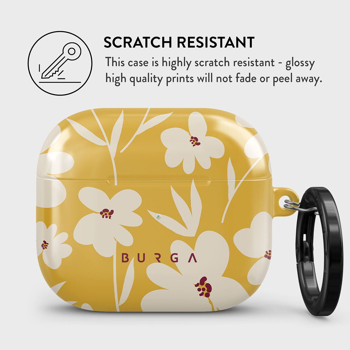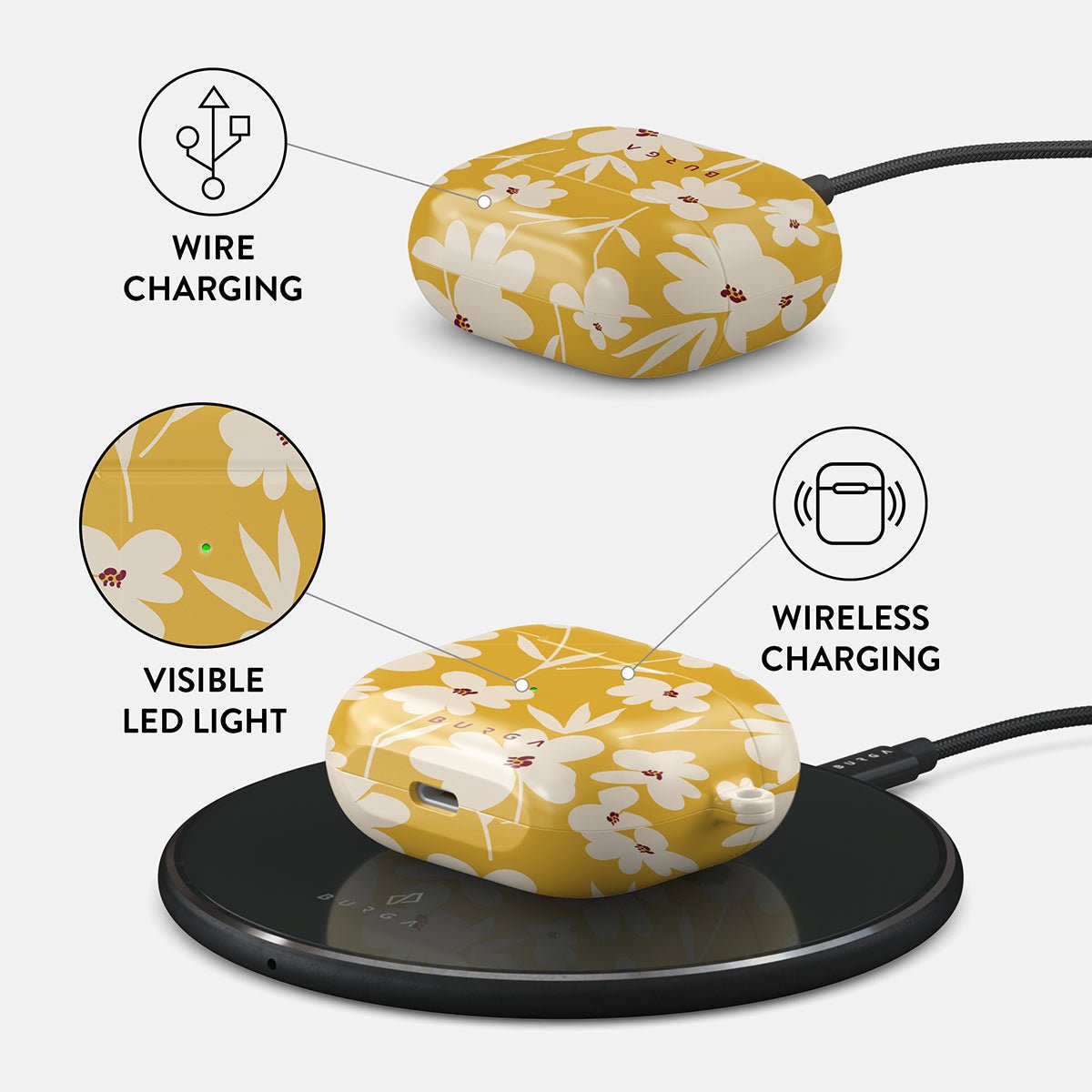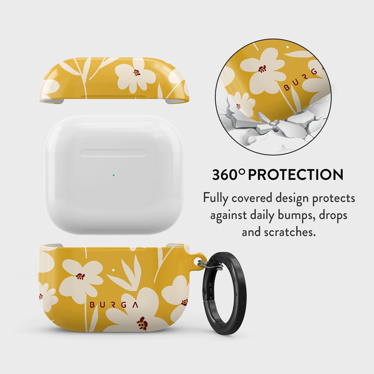 Full of fresh produce. warm rays of sunshine. and relaxing moments. our Sunday Market Apple Airpods 3 case case cover encase all of this! The vintage mustard-yellow background with beautiful creme flowers will add that soft floral touch to your wardrobe while protecting your device from unexpected falls!
