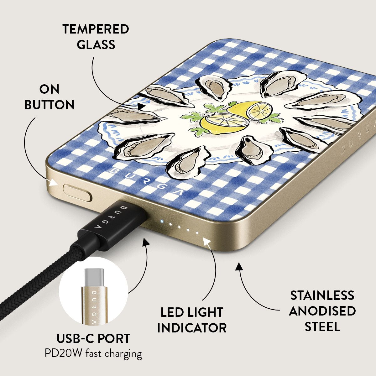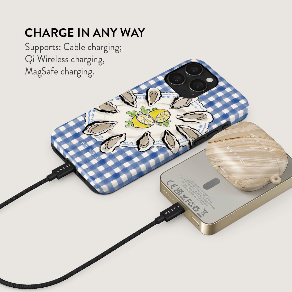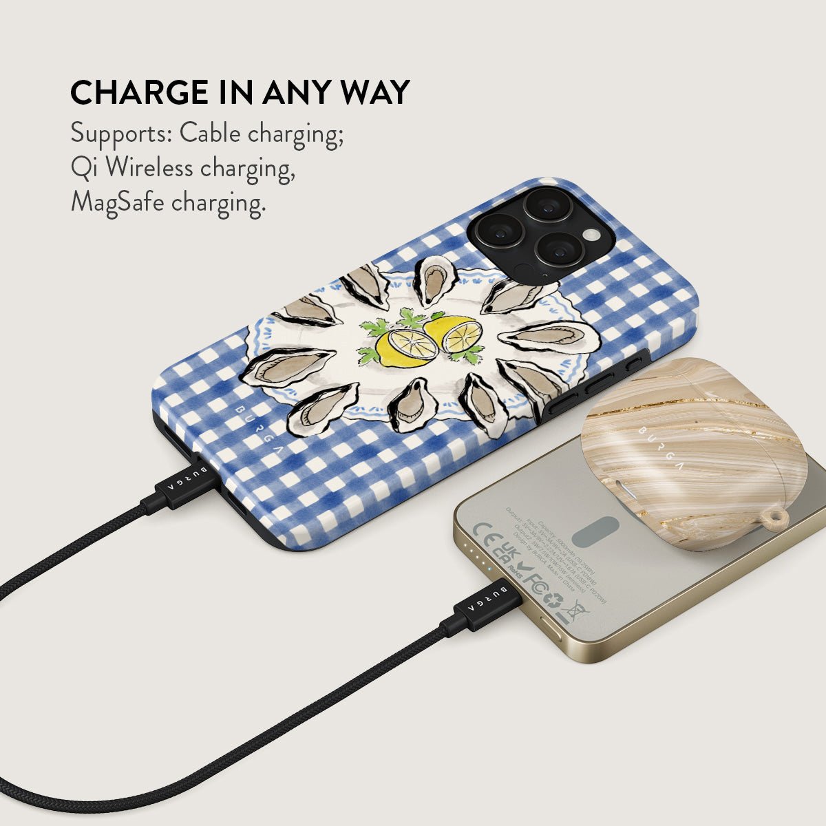 Small but mighty. Stylish but practical. Meet the new and improved BURGA Magnetic Power Bank – your pocket-sized savior with a 5.000 / 10.000 / 15.000 mAh punch. It’s where sleek design meets BURGA’s signature style. made to keep you charged and turning heads wherever you go.
