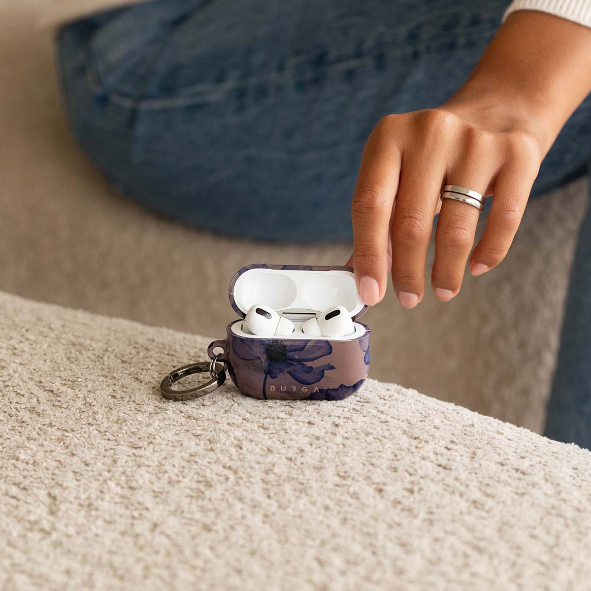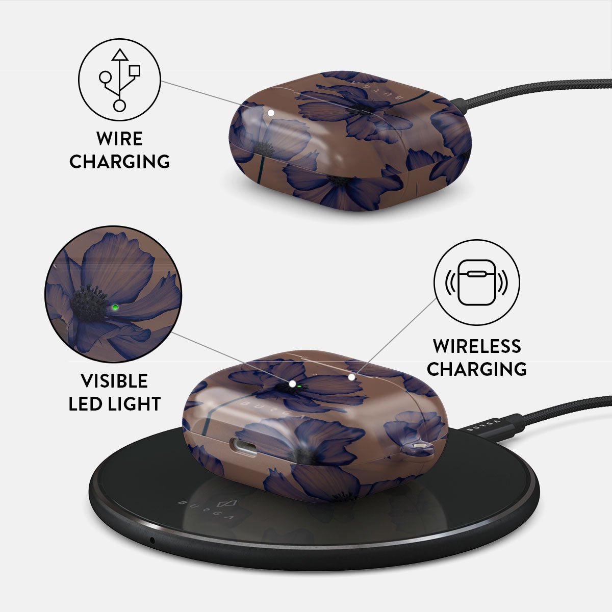 Discover our Velvet Night design. On a soft nude backdrop. blue poppies dance in the untamed rhythm of the wind. A blend of night’s peace and daring energy. this Apple Airpods 3 case cover is perfect for those who dream big and seek adventure.